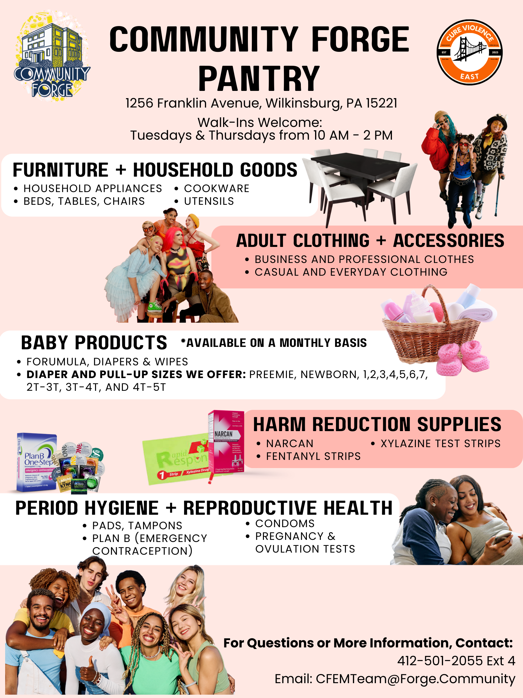 Community Forge’s Economic Mobility program supports local individuals and families as they strive for financial independence. This includes crucial resources such as household supplies, legal and systems navigation, and opportunities for skill-building and job training.